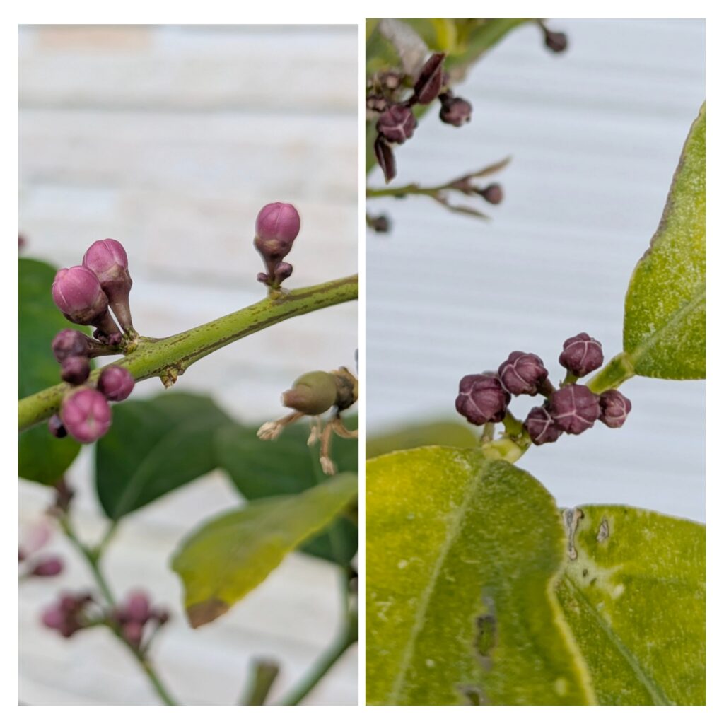 蕾の様子です 左がレモン、右が赤いミニレモンになります🍋